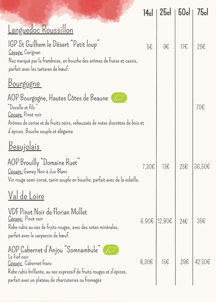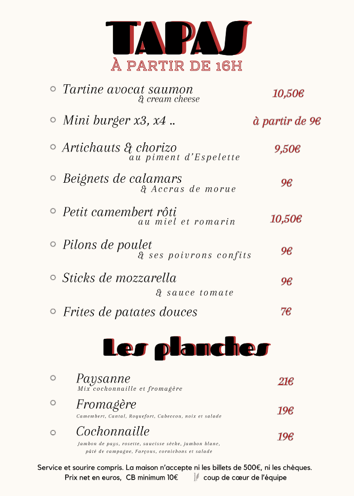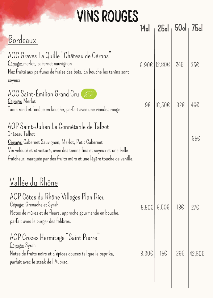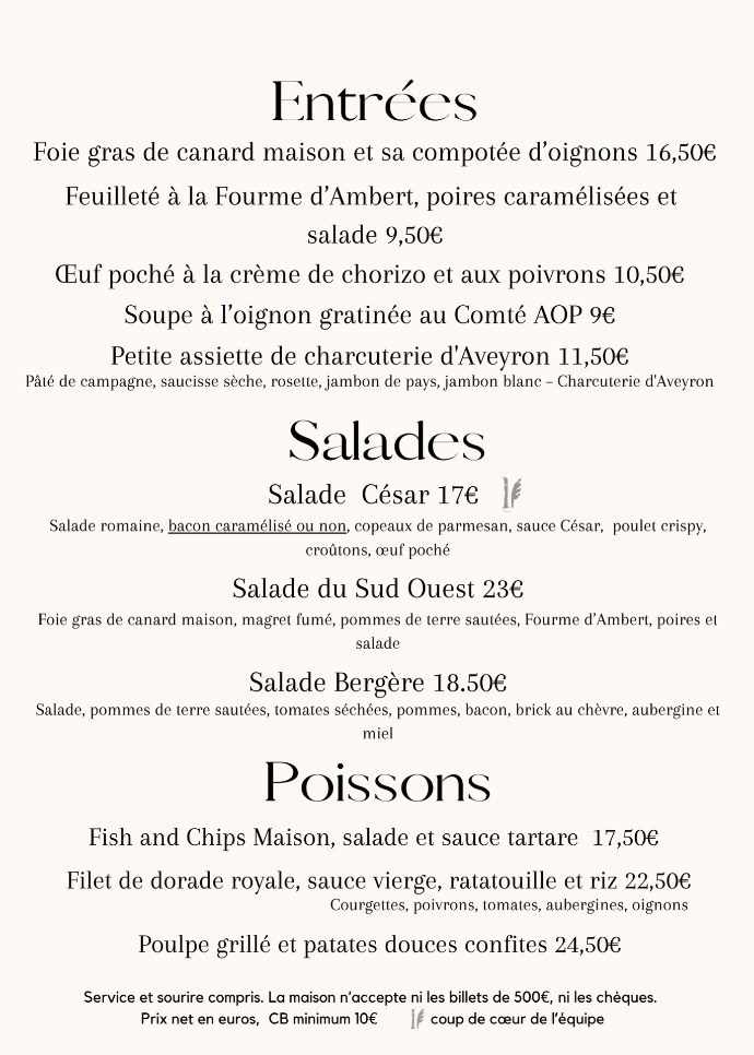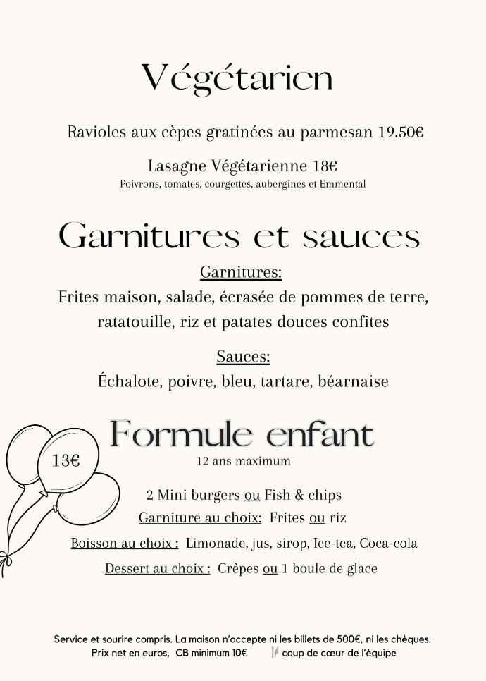 Découvrez le menu de notre brasserie,