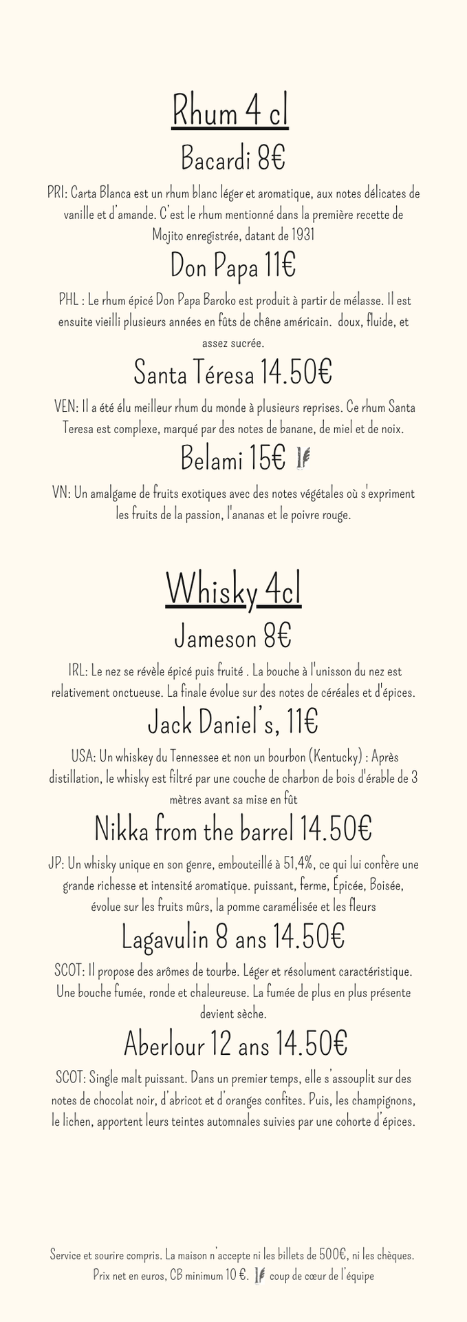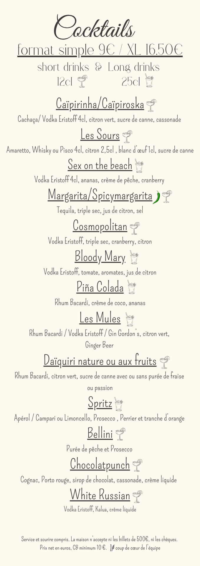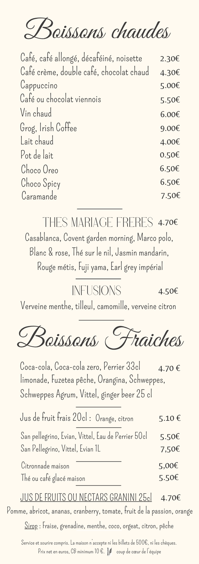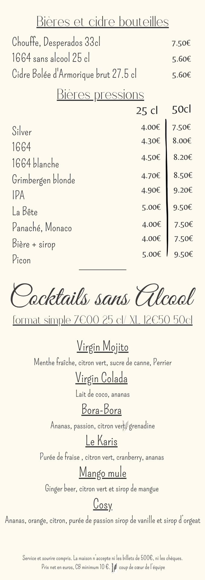 CARTE DES BOISSONS