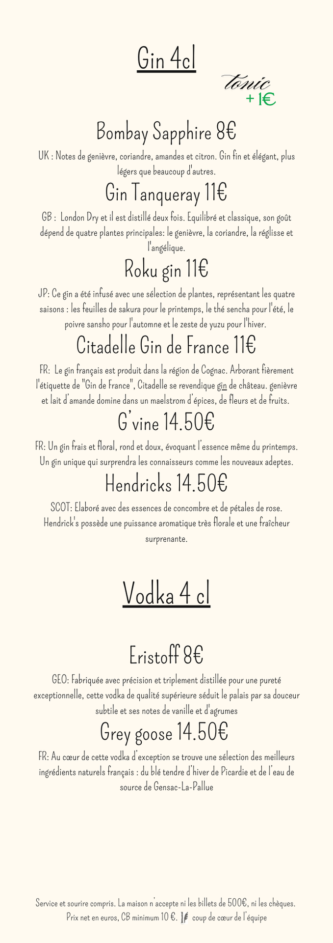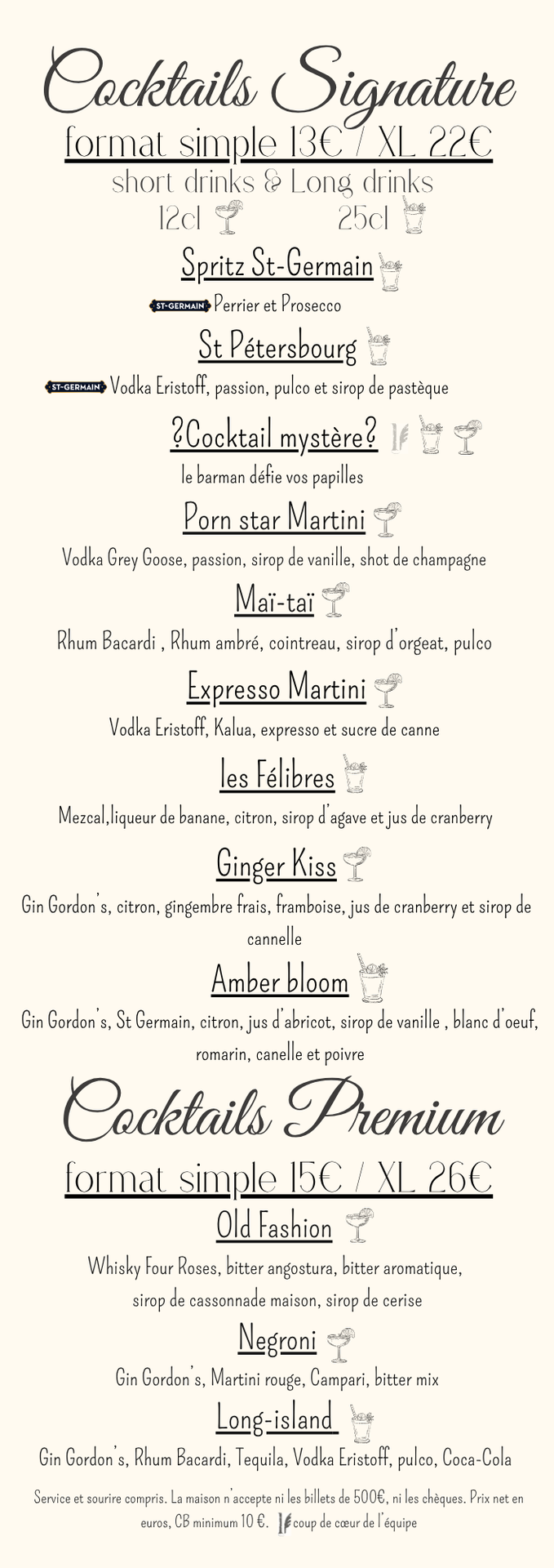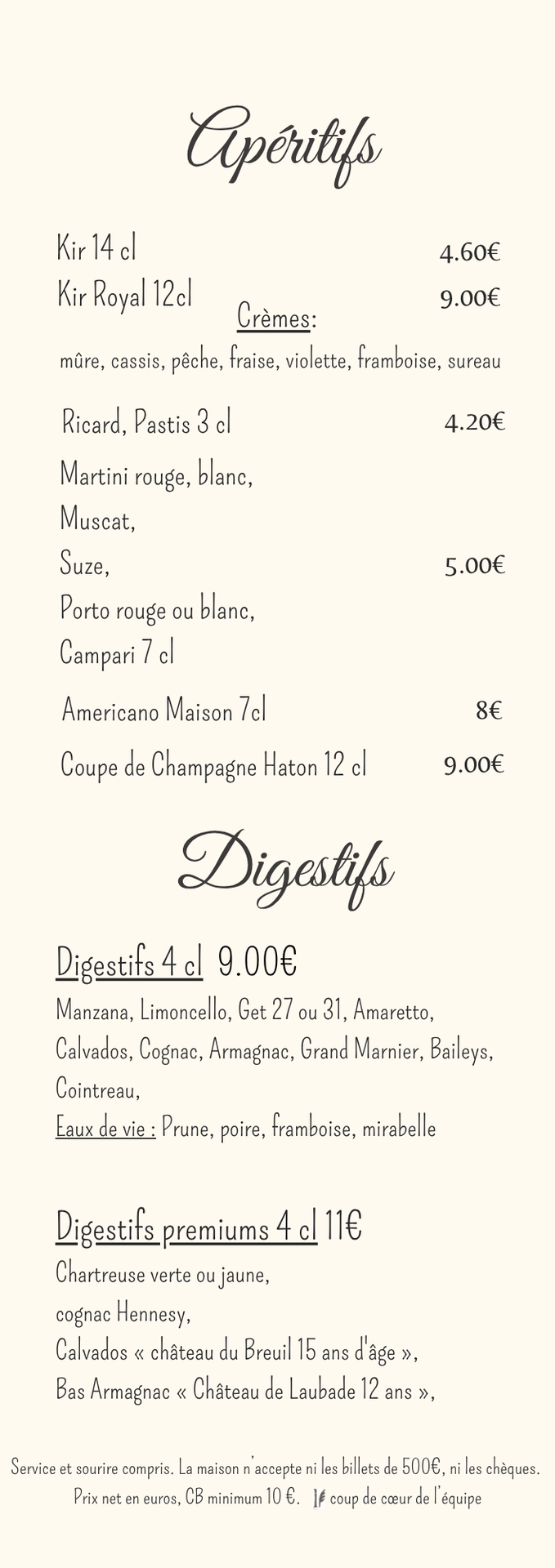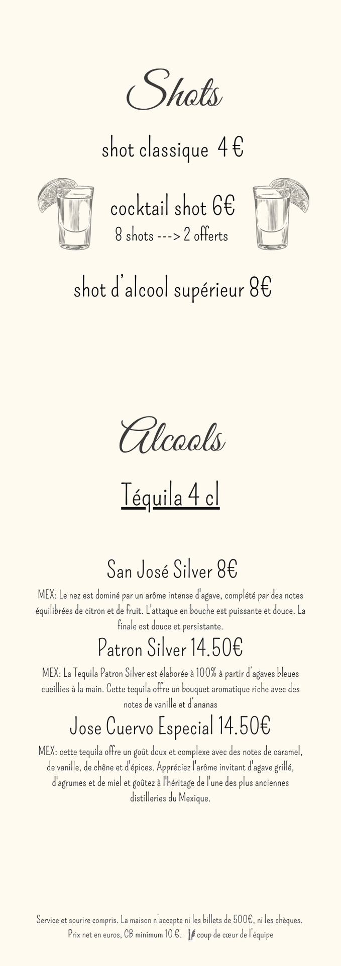 CARTE DES BOISSONS